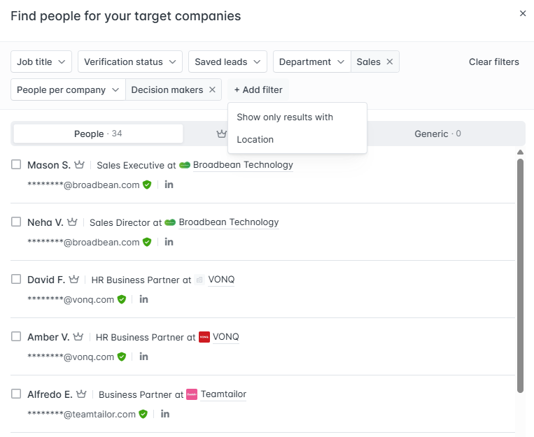You can get email addresses, phone numbers from your decision makers there, find relevant signals that they are receptive to your offer (hiring for specific roles, changes in the buying committee, technologies used, and fundraising activity), craft great outreach drafts there with their powerful AI writer, do the mass customization, send campaigns directly from there, and so much more. In terms of high-quality data & low complexity of usage, they are #1 choice on the market.