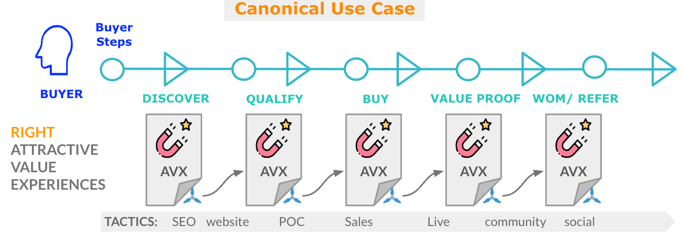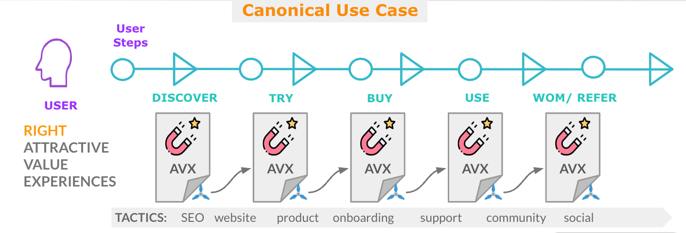 Every single AVX has six components that are necessary to make it functionally complete and effective as a GTM unit. Working in an integrated fashion, these six components deliver an experience that is self contained. Moreover, you can optimize these components based on feedback until the experience (and the underlying value prop) is strong enough to both attract and propel customers successfully to their goals.
