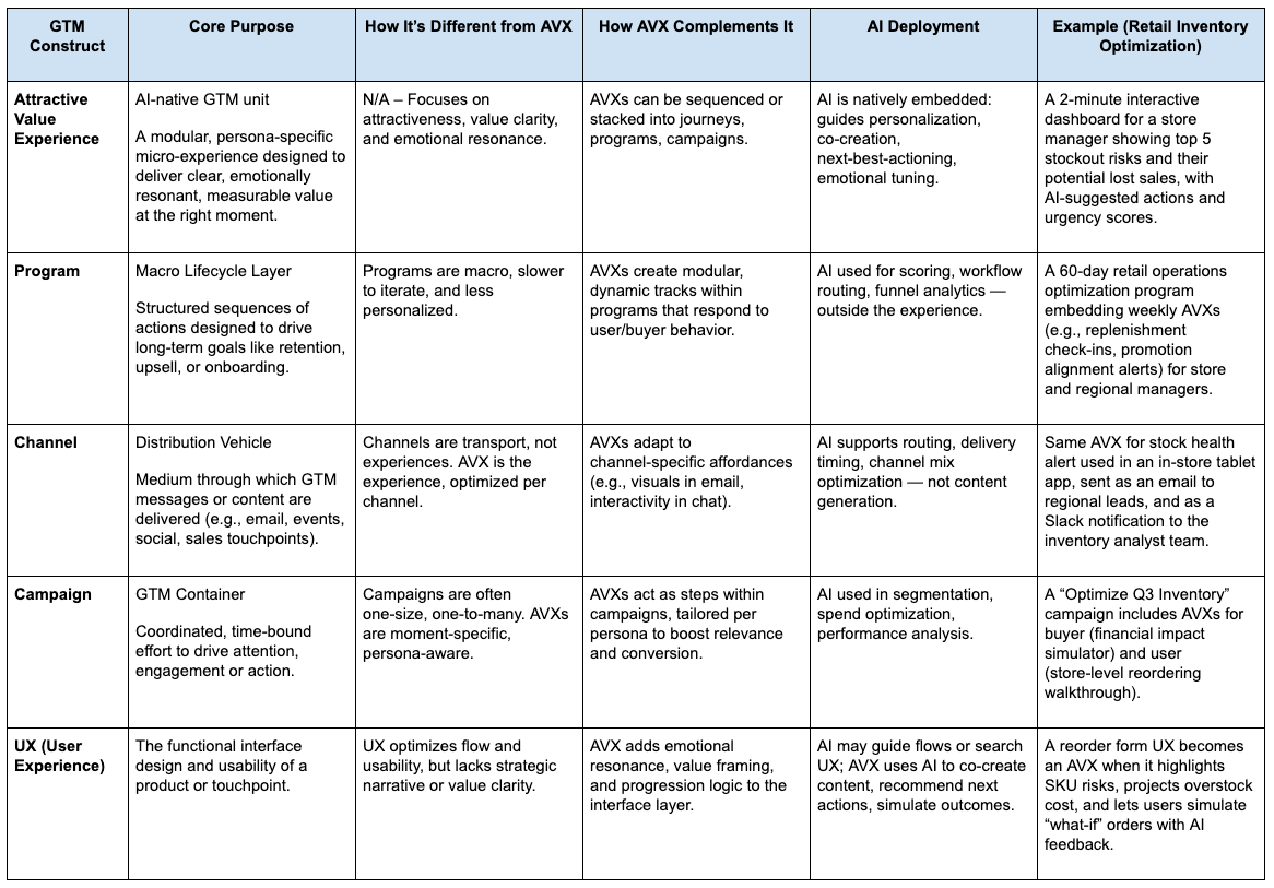 Anurag created a powerful new framework: the Attractive Value Experience (AVX). It’s a practical, flexible unit designed for AI-native GTM teams who want to deliver value fast, with precision and accountability.