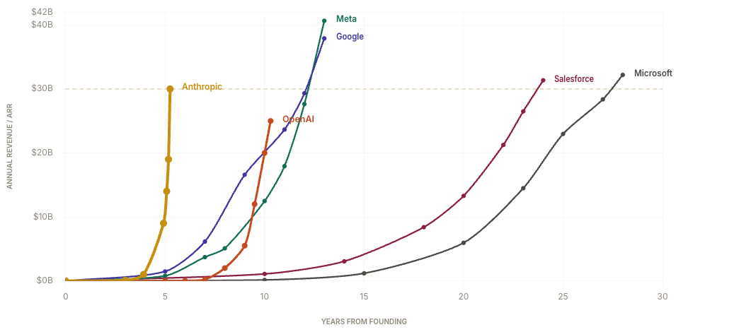 And Anthropic, the company behind Claude, just crossed $30B in ARR - in record time: