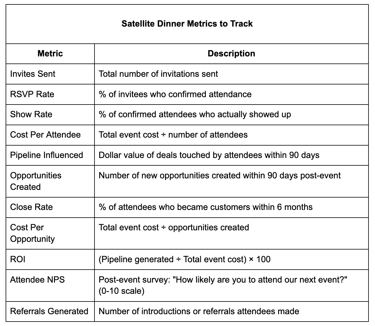 These intimate settings enable real conversations that a noisy expo hall never will. And the work doesn’t stop at planning and executing; here are a few metrics you can track to assess the success of the event.