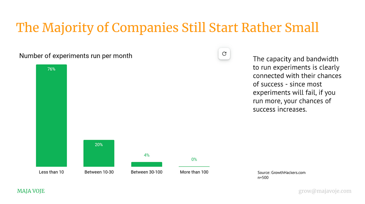 Yet, most organizations run less than 10 experiments a month, which is less than 3 a week.