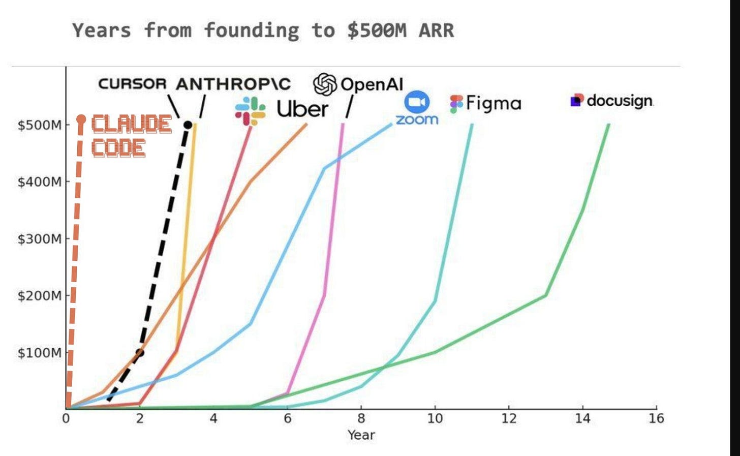 While I was writing this, my friend Aakash Gupta just sent out this chart in his newsletter on how Claude Code hit $500 million ARR in four months.