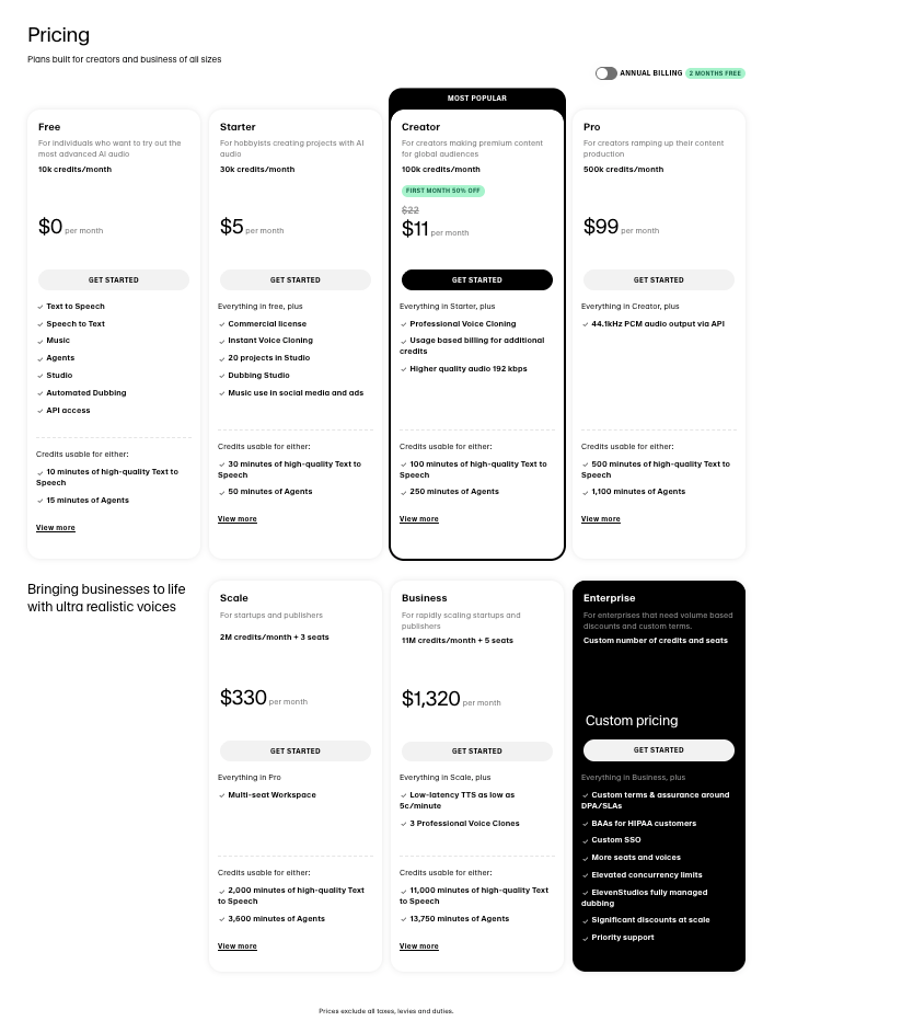 I had a similar reaction to this pricing page by ElevenLabs that has 7 packages, but I still somehow understand what package I should choose and what is covered.