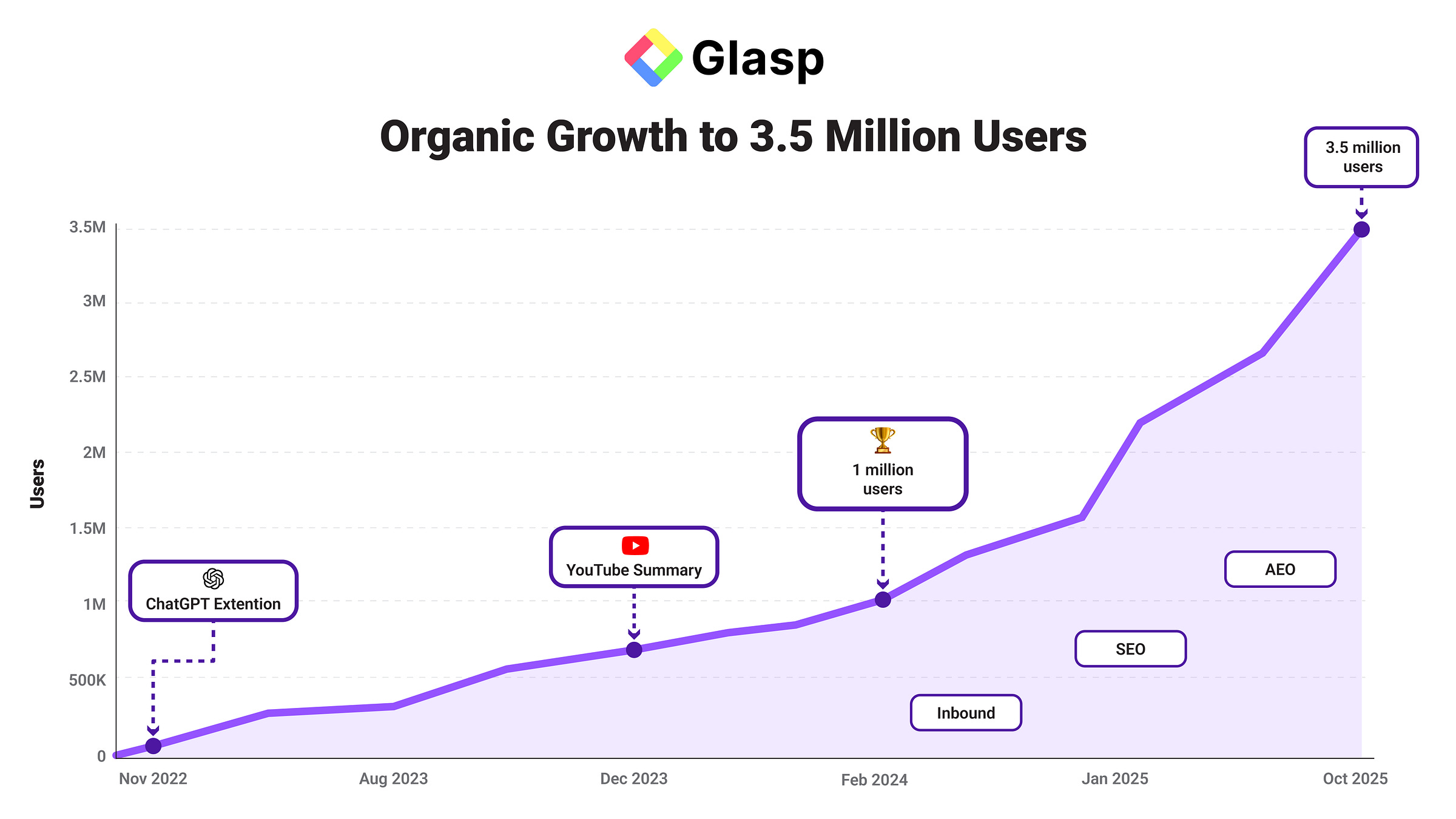 Over the past few years, Glasp grew to over 3.5 million users, entirely through organic discovery — no ads, no affiliate deals, no paid campaigns.