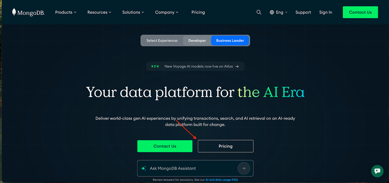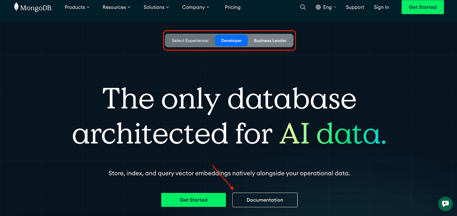 For MongoDB, they have an “experience” selector at the top that’s tied to their two main ICPs: Developers and Business Leaders.