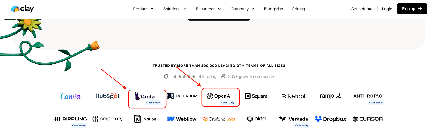Or Clay has logos from OpenAI and Google linked to case studies. Now the logos can be validated.