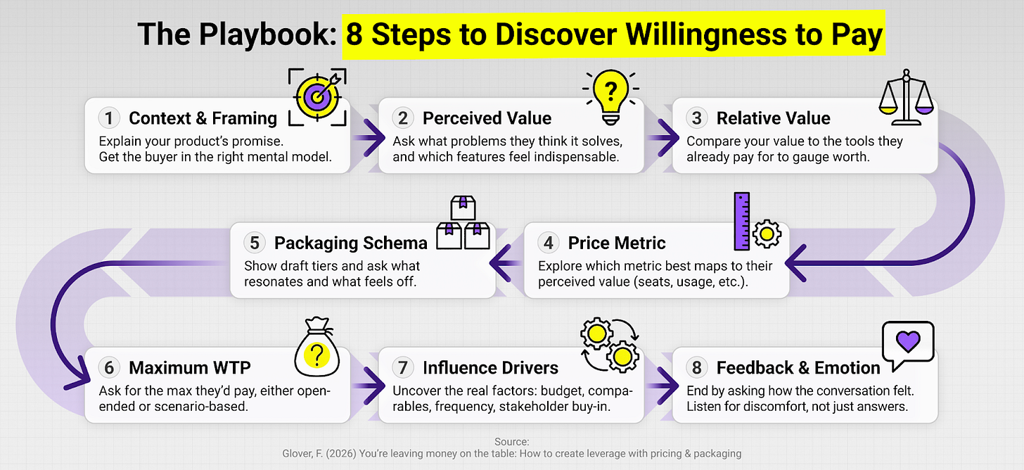 Fynn Glover, CEO of Schematic, believes, and I agree with him, that being able to talk to customers about willingness to pay is arguably the most critical tool in a founder’s toolbelt for finding & accelerating Product-Market Fit (PMF).