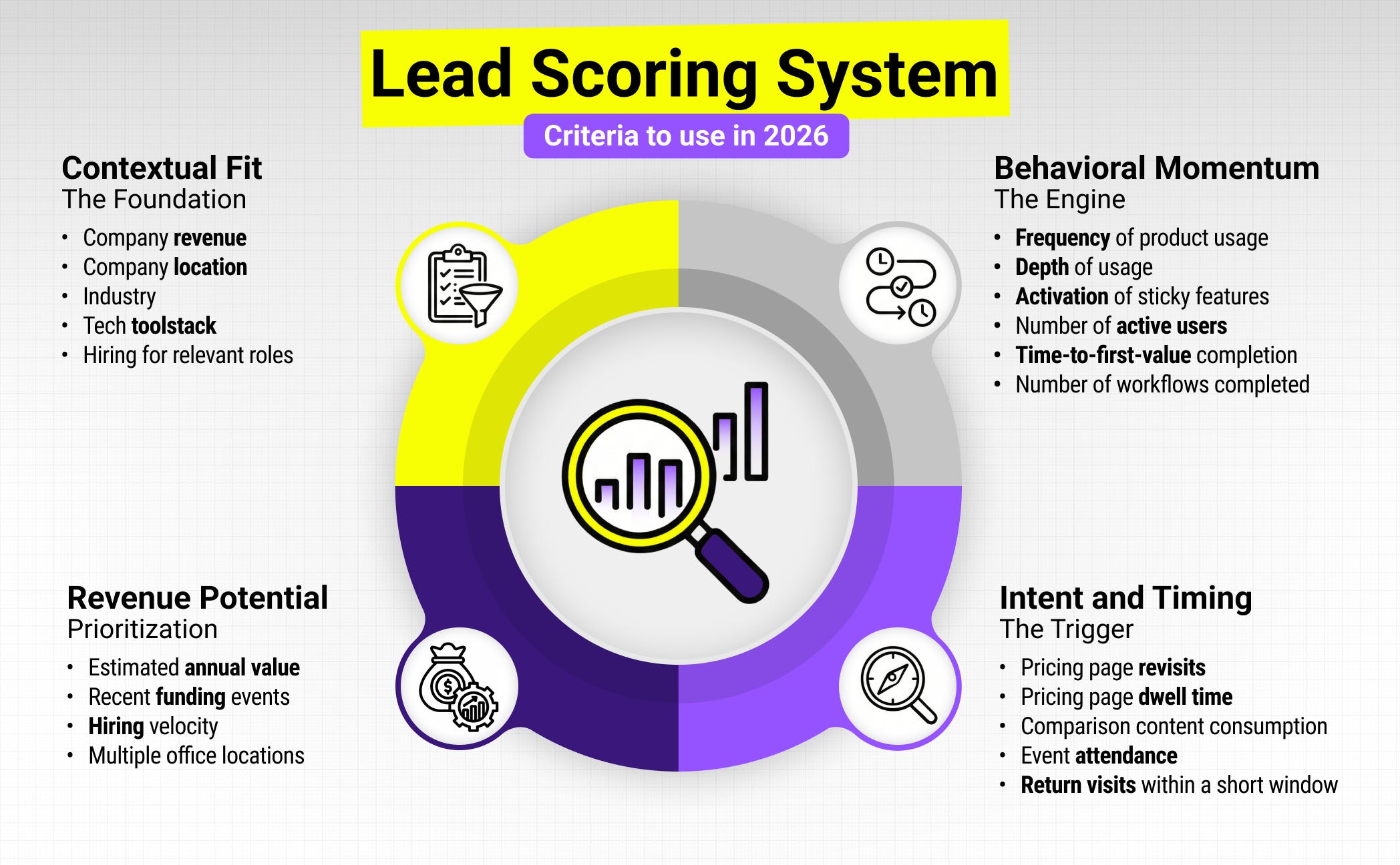 The bottom line: Lead scoring in 2026 isn’t about counting clicks. It’s about layering fit, behavior, timing, and value into a system that tells your team exactly where to focus their energy.