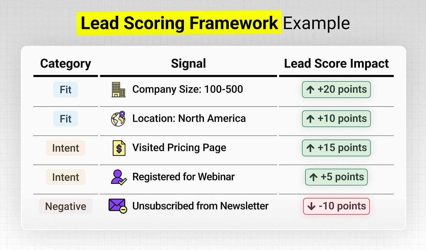 For an effective lead scoring system, you need to add multiple layers of signals - here’s are the most common examples: