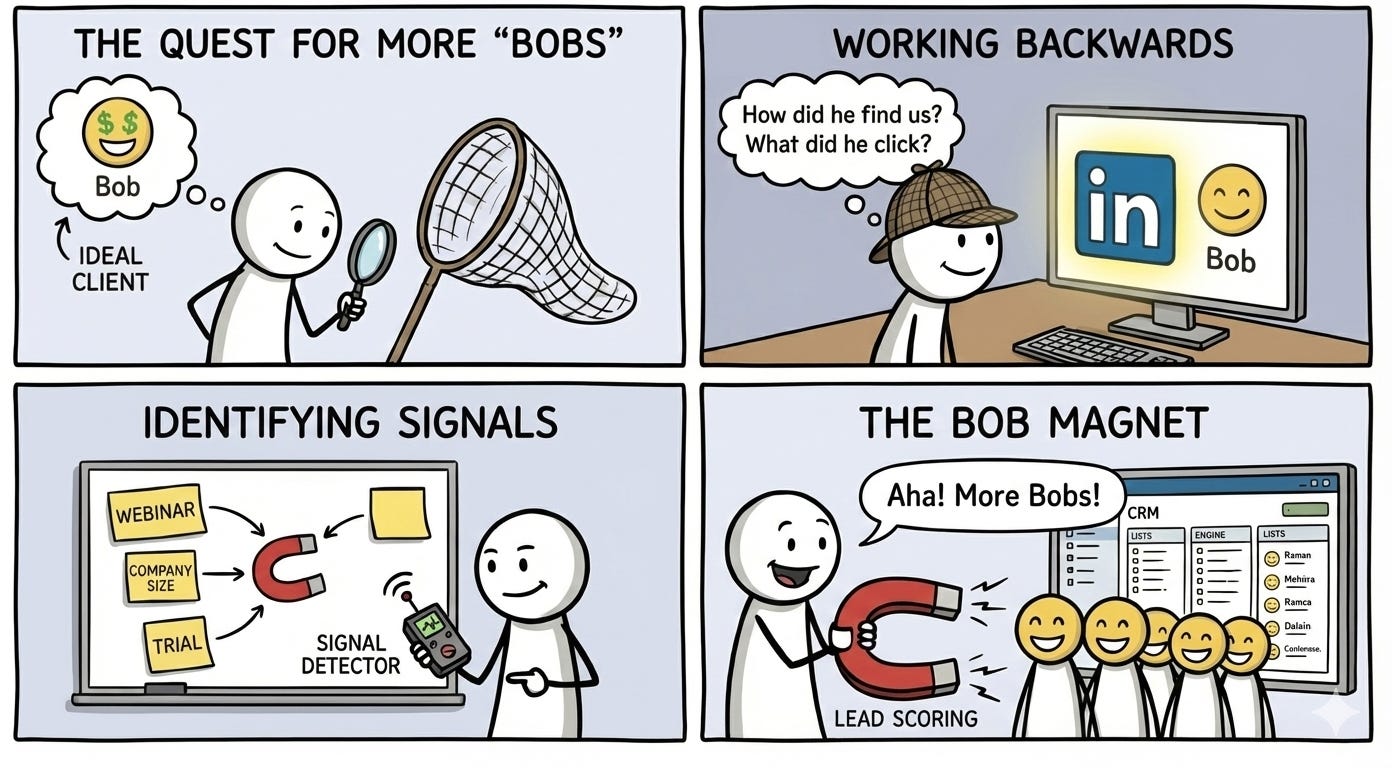 You want to attract more “Bobs” to your business - now let’s figure out what signals will enable you to find Bobs early on and focus your efforts on making sure that they have the best possible experience with your company.