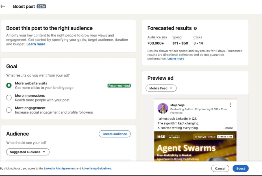 Of course, we immediately took it for a spin and between us, though leadership ads worked better than “the native boost”. So get your 2026 budgets ready because it is pay to play, baby 🎰