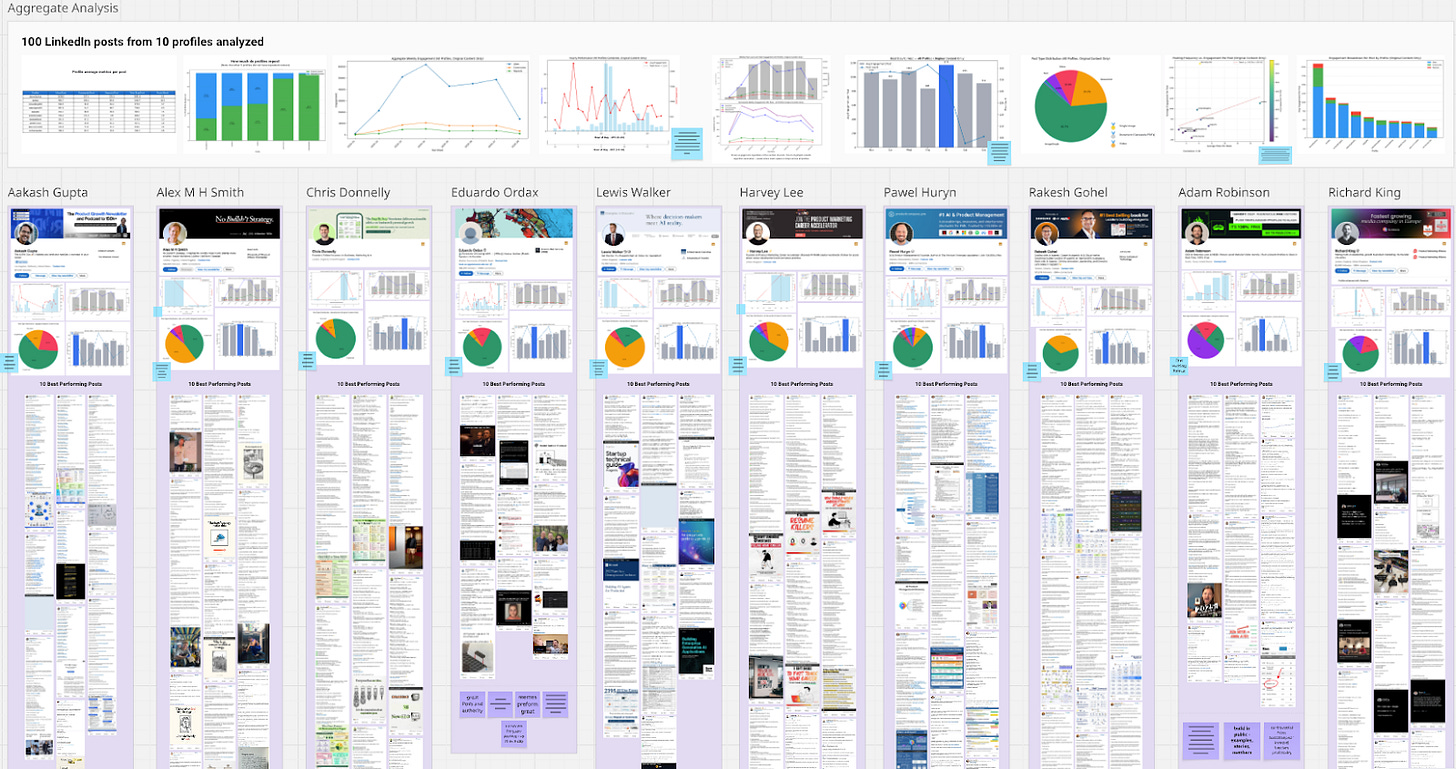 Whenever I don’t know what to do on LinkedIn, I start saving posts and taking screenshots. I used to do that manually, but by now we can create this neat-looking moodboard of best-performing posts by selected creators and their best publishing practices with our 4 LinkedIn AI agents and get the results on our Slack in minutes - not weeks.
